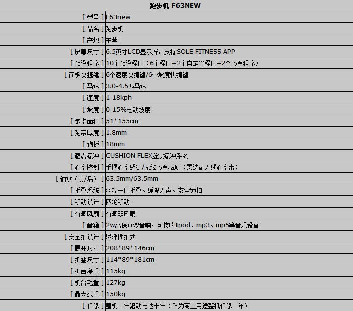 美國SOLE 速爾F63NEW跑步機