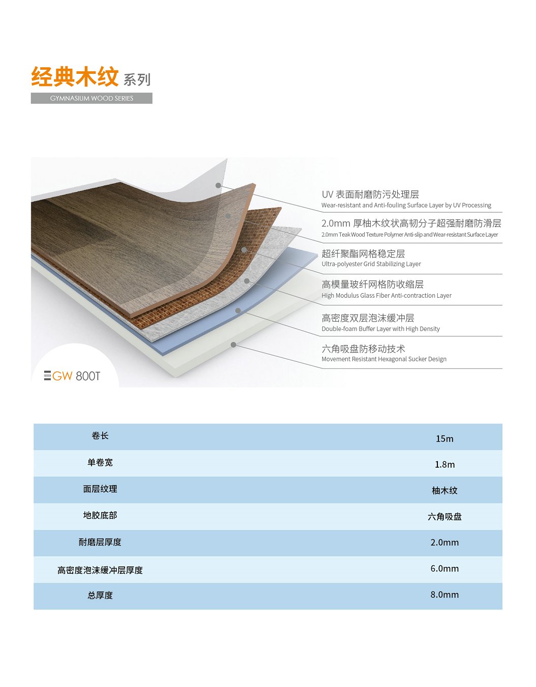 天速綜合地膠籃球場地膠經典木紋系列GW 800T柚木紋