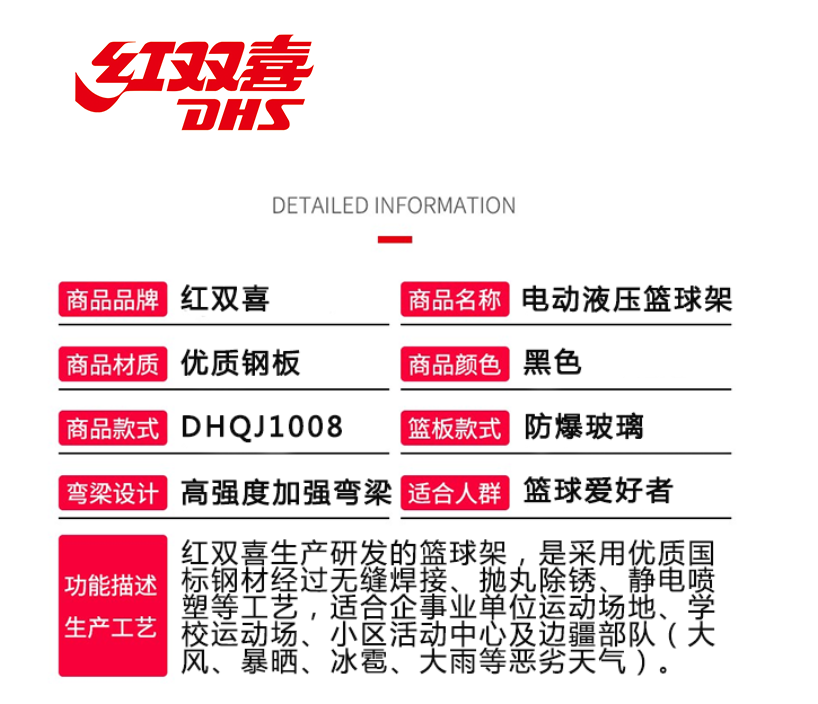紅雙喜DHQJ1008 電動(dòng)液壓籃球架