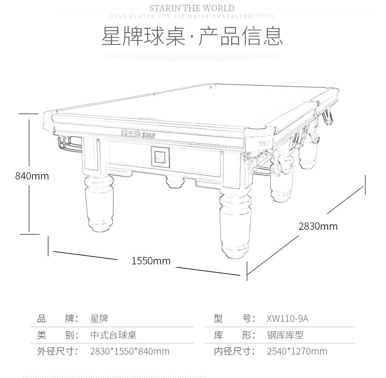 - 星牌 XW117-9A 美式臺(tái)球桌
